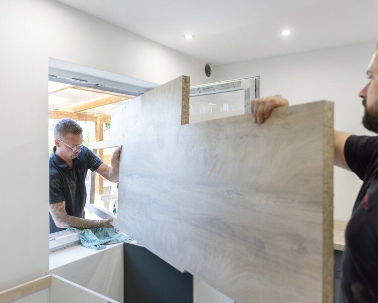- das millimetergenaue Einpassen der Arbeitsplatte