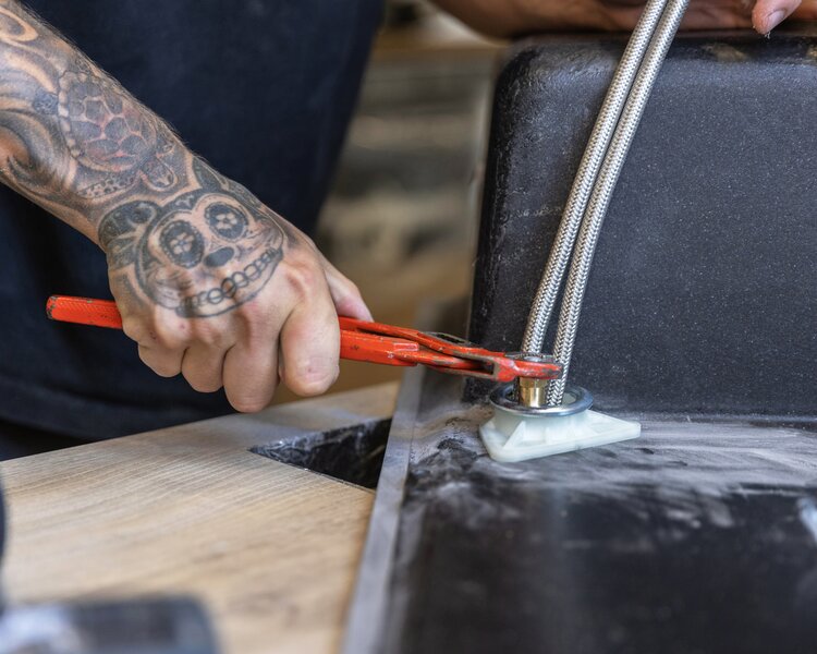 - den fachgerechten Anschluss von Spüle und Armatur